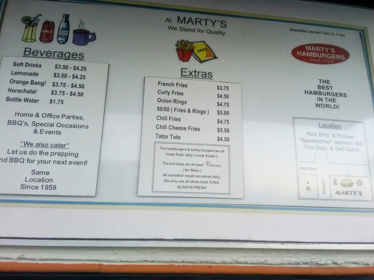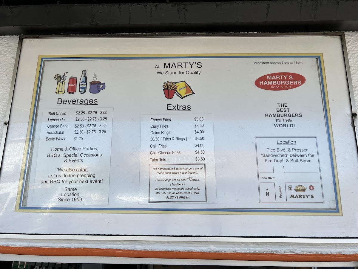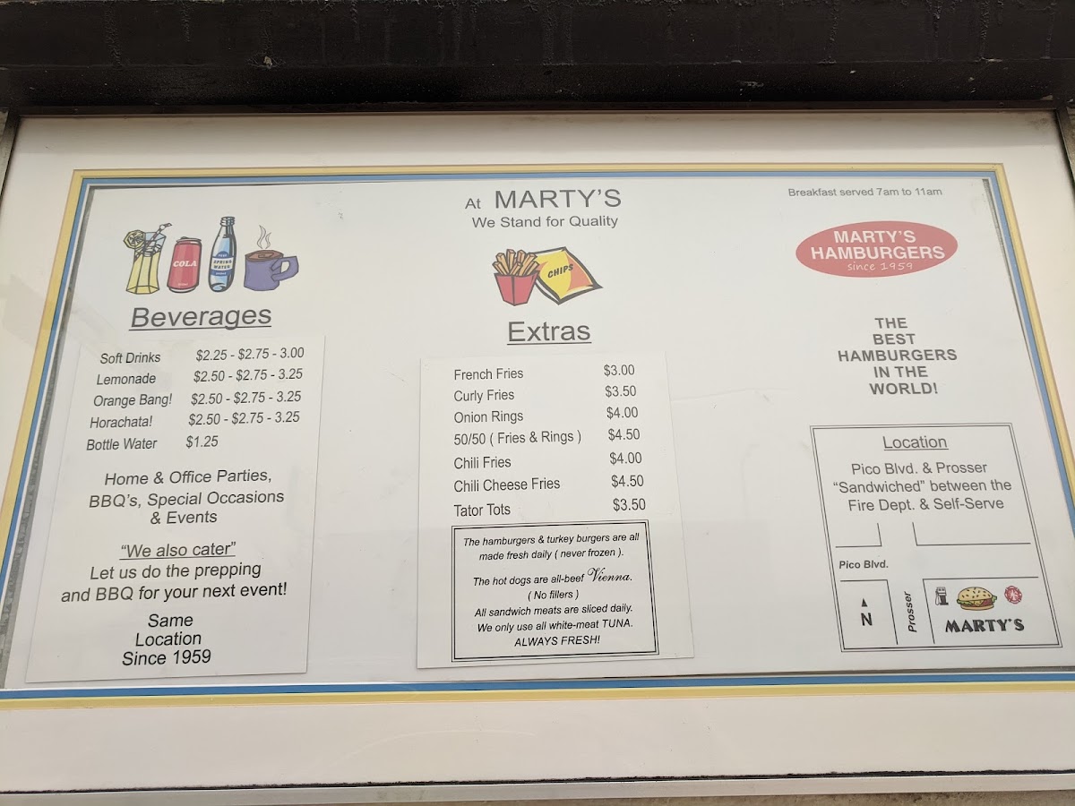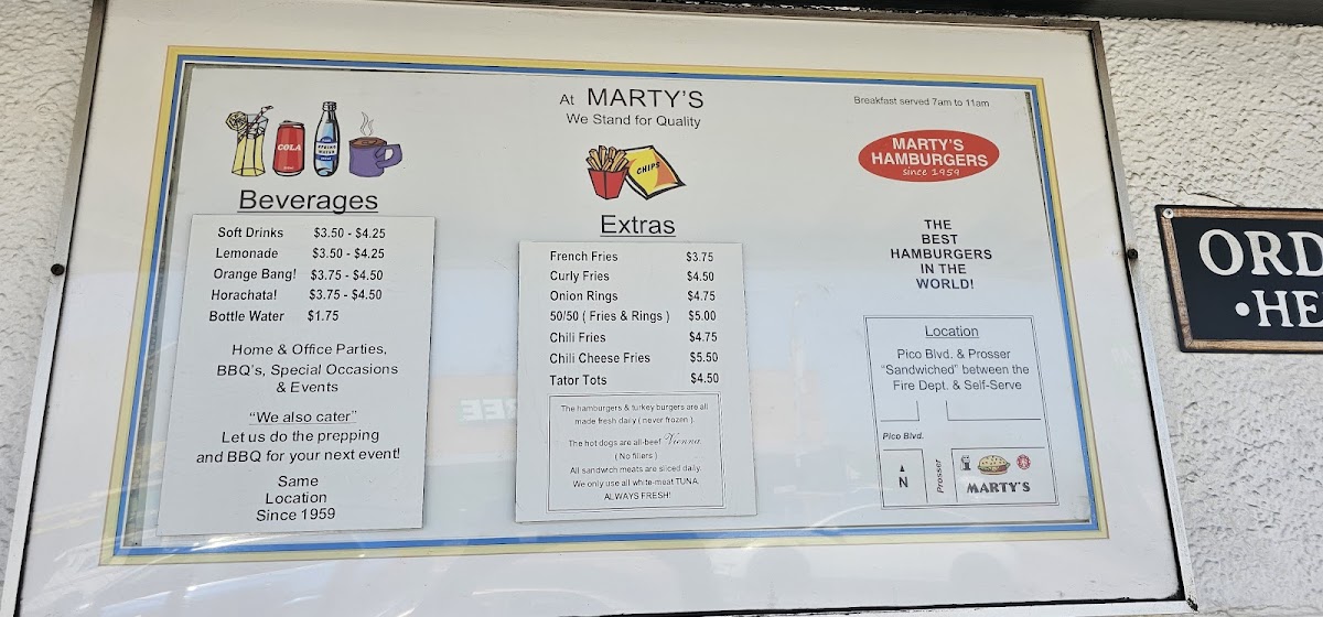 If you find yourself craving a mouthwatering burger in a quintessentially Los Angeles setting, look no further than Marty's Hamburger Stand. Nestled at 10558 W Pico Blvd, this charming old-school burger joint is not just a place to grab a bite; it’s an experience steeped in homely vibes and friendly service. With a rich menu featuring classic staples like the Hamburger for just $6.25 and the indulgently delicious Chili Burger at $6.75, Marty's has something to please every palate.